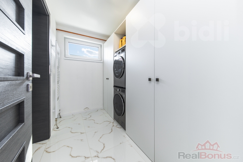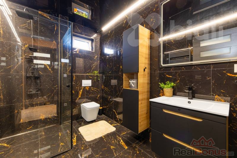 Komfort podtrhuje klimatizace, která se postará o příjemnou teplotu v každém ročním období. Díky fotovoltaické elektrárně o výkonu 5,5 kWp s baterií 10,66 kWh dům chytře šetří energii za vás. Samozřejmostí je napojení na elektřinu, plyn, veřejný vodovod a obecní kanalizaci.