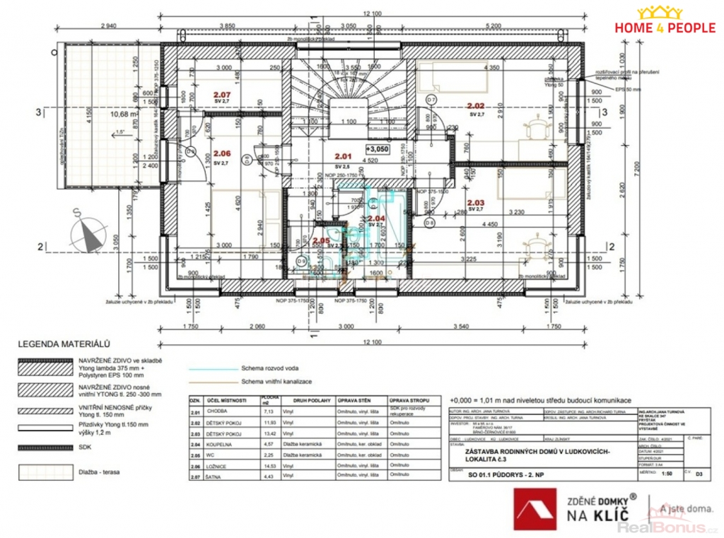 , Zprostředkujeme Vám exkluzivní nabídku výstavby patrového nízkoenergetického rodinného domu typu 4+kk s garáží a terasou nebo jako 5+kk v provedení na klíč v Ludkovicích. Projekt patrového ekonomického domu zajištuje aktuální potřeby dnešní doby se zastavěnou plochou 89 m a užitnou plochou 149 m. Jedná se o kvalitní zděnou stavbu z materiálu Porfix 300. Optimální půdorys poskytuje výborný poměr mezi velikostí plochy obvodových stěn a vnitřního prostoru. Minimální plocha obvodových stěn takto šetří náklady nejen při výstavbě, ale i při vytápění domu. Ekonomický dům je navrhnutý tak, aby měsíční provozní náklady na tento dům byly přibližně třikrát nižší než u bytu podobné podlahové výměry. Prostředky ušetřené na provozu můžete použít například na splátky hypotéky. Uvedená cena obsahuje základovou desku, projekt, DPH a stavba bude provedena na klíč a předána k okamžitému užívání. Kolaudace je samozřejmostí. (Součástí ceny není kuchyňská linka a světla dokážeme za zvýhodněných podmínek zajisti přes naše dodavatele). V uvedené ceně můžete počítat také s finálními povrchovými úpravami exteriéru i interiéru, a to včetně elektroinstalací, sanitárního vybavení s bateriemi, interiérovými dveřmi včetně obložek a vytápění bude řešeno teplovodním podlahovým topením v kombinaci tepelného čerpadla se 180L zásobníkem na teplou vodu. Dle dohody změníme systém vytápění nebo vystavíme komín pro krbové kamna nebo pro využití krbové vložky. Kryté garážové stání spojené s domem nebo terasu za příplatek. Pro náročnější klienty máme nabídku nadstandardního vybavení chytré domácnosti, klimatizaci, externí žaluzie, rolety, rekuperaci nebo fotovoltaiku. Úprava dispozice nebo tvaru domu povolena. Délka výstavby od vydání stavebního povolení 12-13 měsíců. Inženýrské sítě v dosahu. Pozemek je svažitý o výměře 1300 m o rozměrech 15,5 m široký a 86 m dlouhý a je v územním plánu určený pro výstavbu rodinného bydlení a jeho poloha je situována mezi rodinnými domy. Více u makléře a to včetně dohodnutí se na prohlídce. Také nabízíme možnost si projít naše hotové domy. Změna za jiný dům je možná. Doporučuji. Ev. číslo: 31919. Energetický štítek: A (50 kWh/m2/rok).