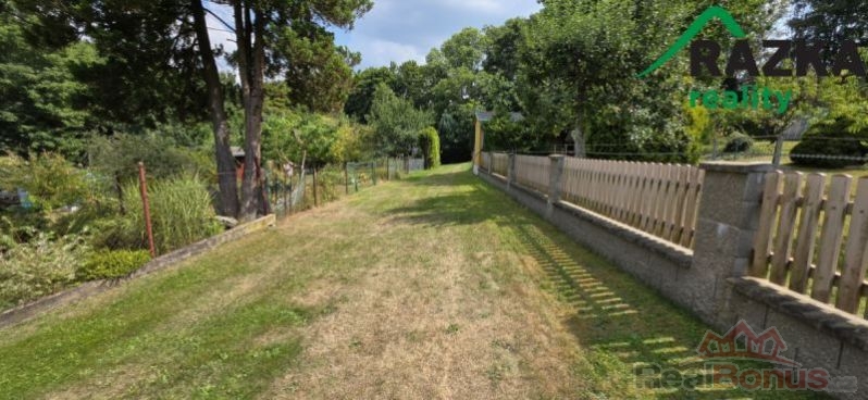 Zahrada je osázená ovocnými stromy a je velmi mírně svažitá. Na pozemku je přípojka pitné vody.