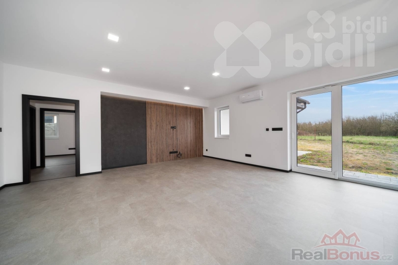 Ke koupi nabízíme samostatně stojící bungalov 4+kk s celkovou užitnou plochou 161,7 m2 (včetně kryté terasy 28,3 m2) v obci Újezd u Přelouče. Jedná se o novostavbu kolaudovanou v lednu 2025, dům je připravený k okamžitému nastěhování.