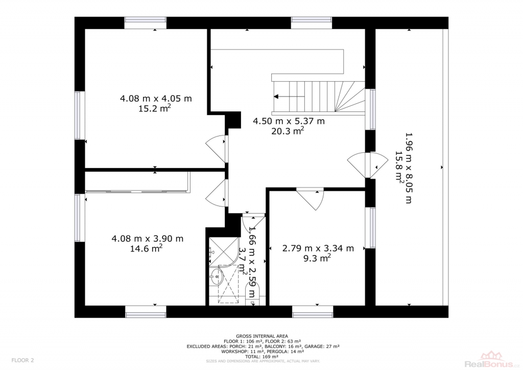 2 x koupelna ( 1 x s vanou, sprchovým koutem a WC v přízemí a 1x se sprchovým koutem a WC v patře