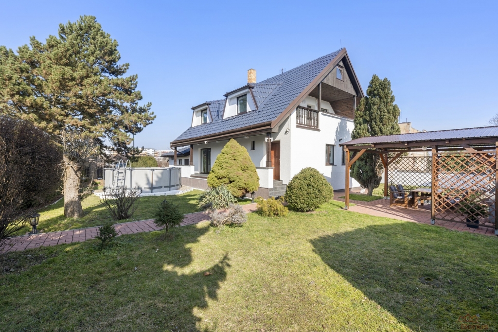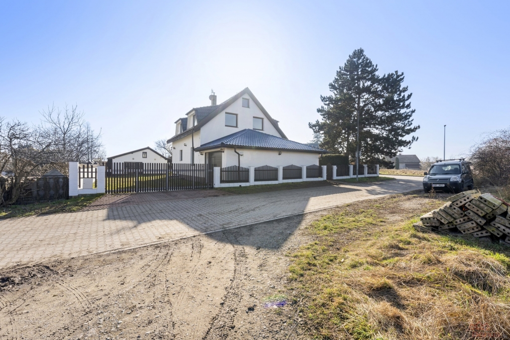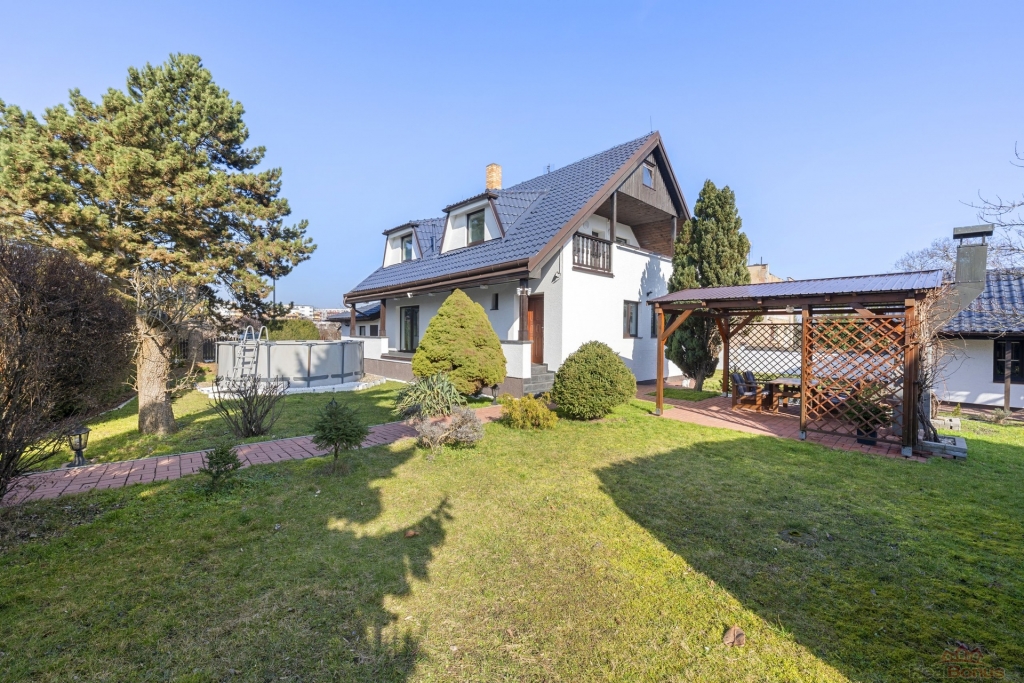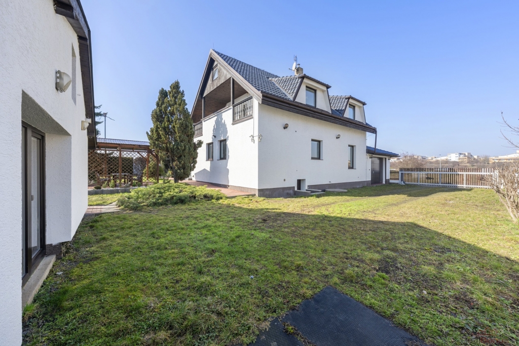 Na pozemku se nachází pergola pro letní posezení a také dostatek místa pro parkování dalších vozidel, což výrazně zvyšuje komfort každodenního užívání.