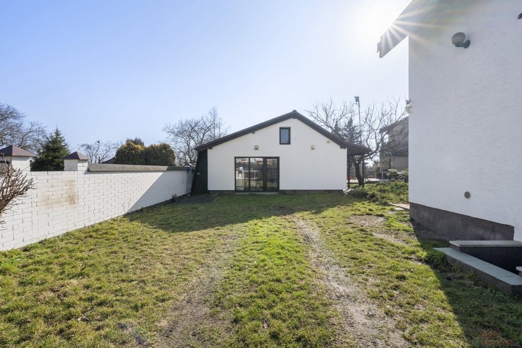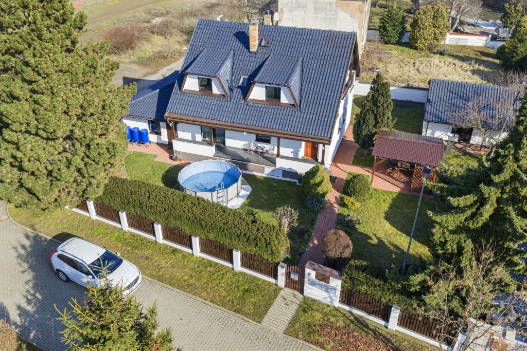 Nemovitost je obklopena udržovanou zahradou, která poskytuje příjemné soukromí a prostor pro relaxaci i rodinné aktivity.