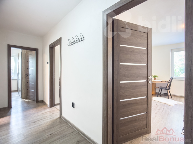 Exkluzivně nabízím k prodeji byt 3+1/L o výměře 75 m2 v osobním vlastnictví (s družstevním financováním), v 1. NP bytového domu (pouze 4 byty) v klidné lokalitě obce Nučice, okr. Praha - západ. Byt je po kompletní rekonstrukci (zděné jádro, nové podlahy, kuchyňská linka se spotřebiči, plastová okna, plynový kotel, elektrický boiler..). Byt má tři neprůchozí pokoje, dvě ložnice, obývací pokoj se vstupem na lodžii a kuchyni s oknem, koupelnu se sprchovým koutem a oddělenou toaletou. Na podlahách v pokojích, kuchyni a chodbě je vinyl, v koupelně je dlažba. V kuchyni je kuchyňská linka se spotřebiči (myčka, elektrický sporák s troubou, lednice s mrazákem, MVT, digestoř). Vytápění bytu je plynovým kotlem umístěným v bytě a ohřev vody zajišťuje elektrický bojler v suterénu domu. Byt je nabízen včetně vybavení. K bytu náleží sklepní kóje v suterénu domu a další místnosti, které je možno využít pro uložení věcí. Dále je k dispozici kolárna a společná sušárna se sušičkou a prostorem na pračku. Okna jsou plastová. K bytu náleží pozemek (zahrada) 190 m2. Byt se nachází ve velmi žádané a klidné lokalitě s veškerou občanskou vybaveností - v těsné blízkosti škola, školka (cca 10 minut pěšky), obchody, pošta, restaurace. Před domem jsou dětská hřiště, sportoviště, workoutové hřiště (cca 12 minut pěšky), výhled z oken je na zeleň mezi domy. Zastávka BUS směr Praha - Zličín je před domem (2 min chůze), vlak 3 minuty autem, Zličín - metro 11 minut autem. Byt je vhodný k bydlení i jako investice. Pokud hledáte bydlení v dosahu přírody a zároveň v blízkosti Prahy, tato nemovitost splňuje oboje. Doporučuji. Byt je možno financovat úvěrem, který vám rádi zařídíme. V případě většího počtu zájemců bude nemovitost nabízena formou aukce. Pokud Vás tato nabídka zaujala, pro více informací a domluvení prohlídky neváhejte kontaktovat makléřku.