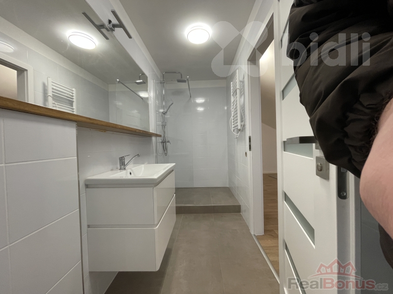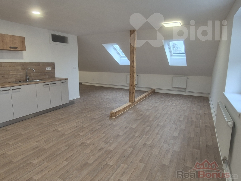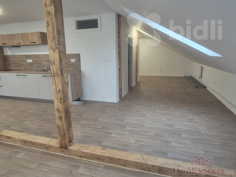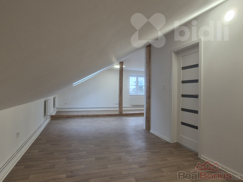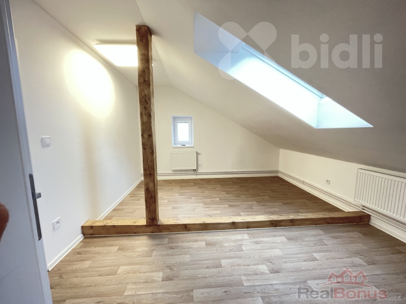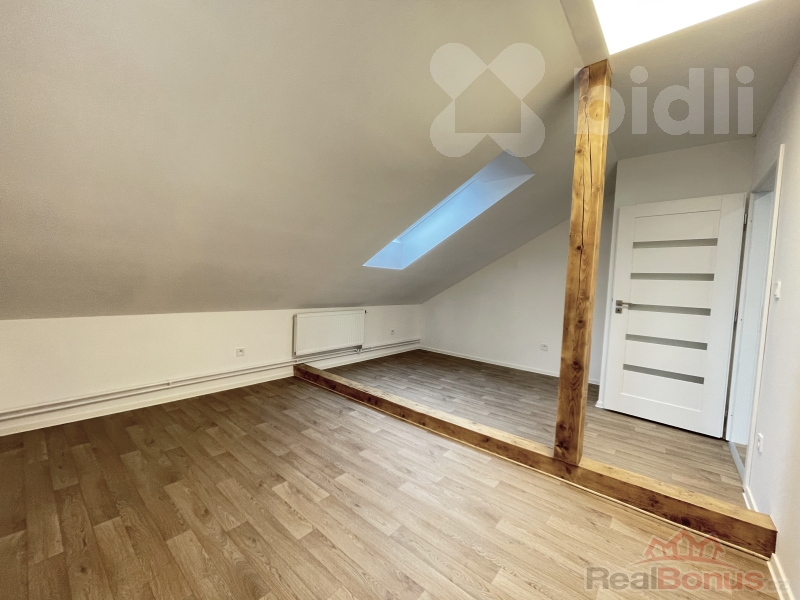 Nabízím k pronájmu podkrovní byt 2+kk v prvním patře cihlového rodinného domu. V domě jsou pouze čtyři bytové jednotky - dvě v přízemí, dvě v patře - takže je tu naprostý klid a soukromí.