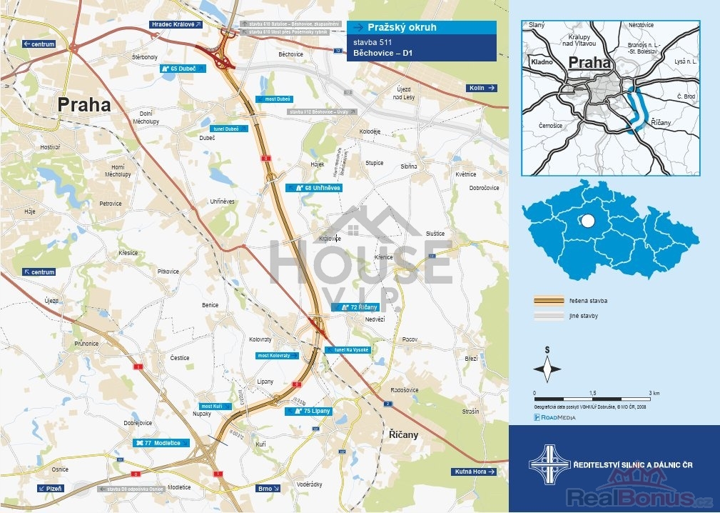- 3 min. nájezd na dálnici D1 (plánované dokončení úseku 511 Běchovice ? D1 v roce 2027, který výrazně zlepší dostupnost do centra Prahy).