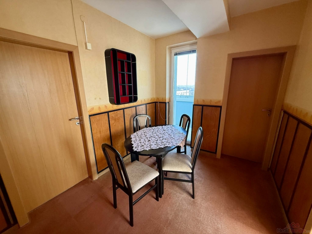 Vybavení a standard: Byt je převážně vybavený nábytkem. Obývací pokoj: pohovka, 2 křesla, konferenční stolek, komoda a skříň. Ložnice: postel, noční stolky a šatní skříně. Chodba s jídelním koutem: vestavěné skříně a jídelní stůl se 4 židlemi. Kuchyň je vybavena spotřebiči: plynová varná deska, elektrická trouba, digestoř, myčka a lednice s mrazákem. K dispozici je také pračka. Ve všech pokojích jsou garnýže se závěsy.