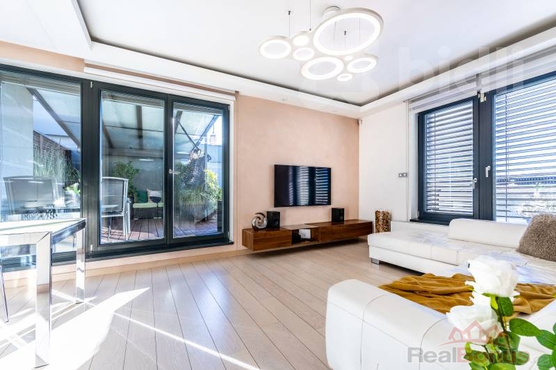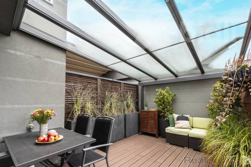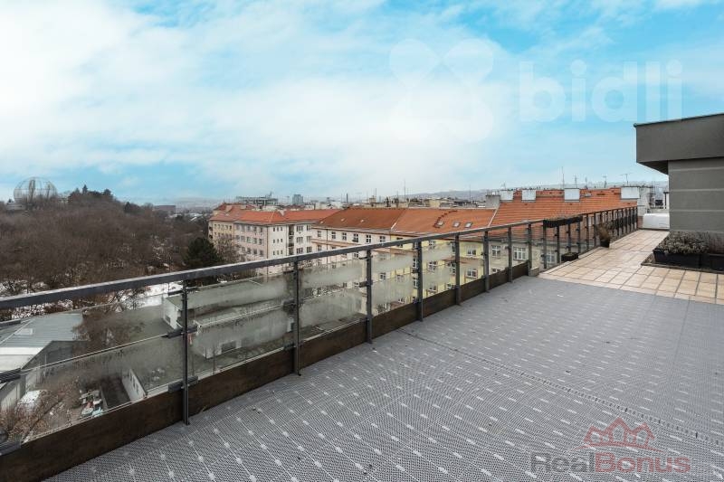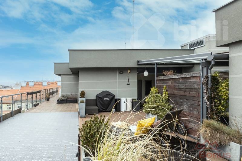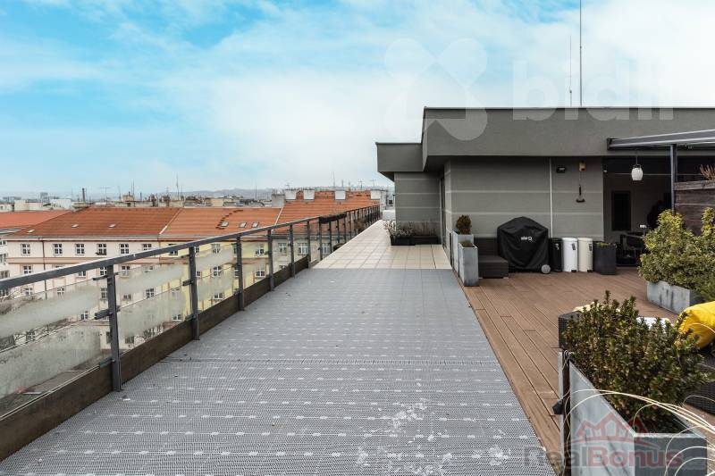 Tento kompletně zařízený byt o celkové ploše 191 m² nabízí dispozici 3+kk s možností snadné úpravy na 4+kk (obytná plocha 97 m²). Absolutním klenotem je velkorysá terasa o rozloze 94 m², která obklopuje celý byt a je přístupná z každého pokoje - váš soukromý ráj nad střechami města.