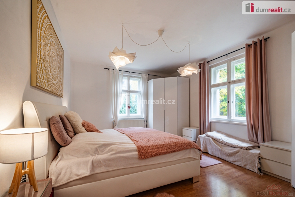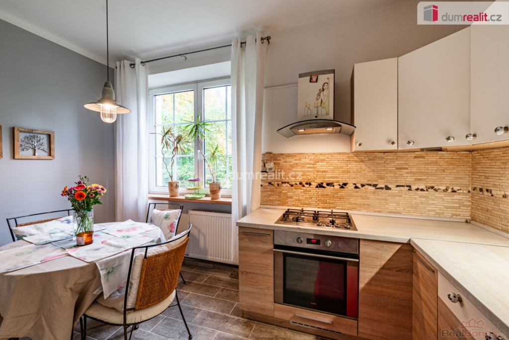 , Dumrealit.cz Vám zprostředkuje koupi krásného bytu 3+1 ve zvýšeném přízemí cihlové vily se zahradou a se dvěma sklepy v klidné krásné ulici v Aši. Bytová jednotka o celkové rozloze 126 m (z čehož 12 m tvoří komora ve druhém patře a 27 m tvoří dva sklepy) je dispozičně velmi dobře řešena, pokoje jsou neprůchozí, z prostorné chodby je přístupná jak kuchyně s jídelním koutem, tak obývací pokoj, dále ložnice, dětský pokoj a koupelna. Bytová jednotka je po zdařilé rekonstrukci vodoinstalace, podlah, nových štuků, omítek, koupelny, kuchyňské linky, Elektroinstalace je v mědi. V bytové jednotce jsou také nová topná tělesa, nové rozvody topení, nové interiérové dveře. Okna zůstala původní dvojitá dřevěná, ale v dobrém stavu, v kuchyni je již okno plastové. Byla instalována nová kuchyňská linka na míru se spotřebiči, v prostorné koupelně je vana, umyvadlo a toaleta. V rámci vybavení bytu zůstávají kvalitní vestavěné skříně. Samozřejmostí je, že zůstává také kuchyňská linka včetně spotřebičů: vestavěná trouba, digestoř a plynový sporák. Vytápění a ohřev teplé vody zajišťuje kondenzační plynový kotel. Přízemí budovy bylo v minulosti odkopáno, opatřeno hydroizolační fólií, byly provedeny injektáže. K bytu náleží dva prostorné sklepy a možnost užívat další společné prostory. Budovu obklopuje pozemek o rozloze 1169 m, zastavěnou plochu domu tvoří cca 135 m, zahrada má tedy celkem 1034 m. V rámci sousedských vztahů je domluveno, že předmětný byt užívá pravou polovinu zahrady. Před domem je bezproblémové parkování. V Aši je veškerá občanská vybavenost, jsou zde škola, školka, městský úřad, supermarkety, obchody, restaurace, travel-free shop, MHD, nádraží atd.. Město je v blízkosti Německa, kde je dobré pracovní uplatnění a možnost výhodných nákupů. Cena zahrnuje provizi RK a veškerý právní servis. V případě zájmu Vám rádi zajistíme financování skrze naše prověřené hypoteční poradce. Ev. číslo: 652865. Energetický štítek: G (20 kWh/m2/rok).