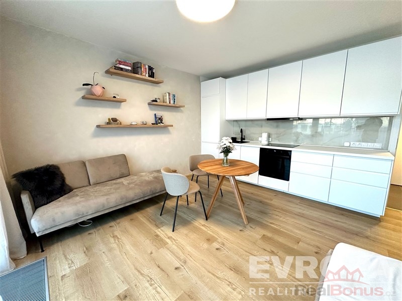 K pronájmu krásný úplně nový moderní zařízený byt v novostavbě blízko k metru 1+kk užitná plocha 67m2 s předzahrádkou 35m2 z toho terasa 15m2, garážovým stáním a prostorným sklepem.