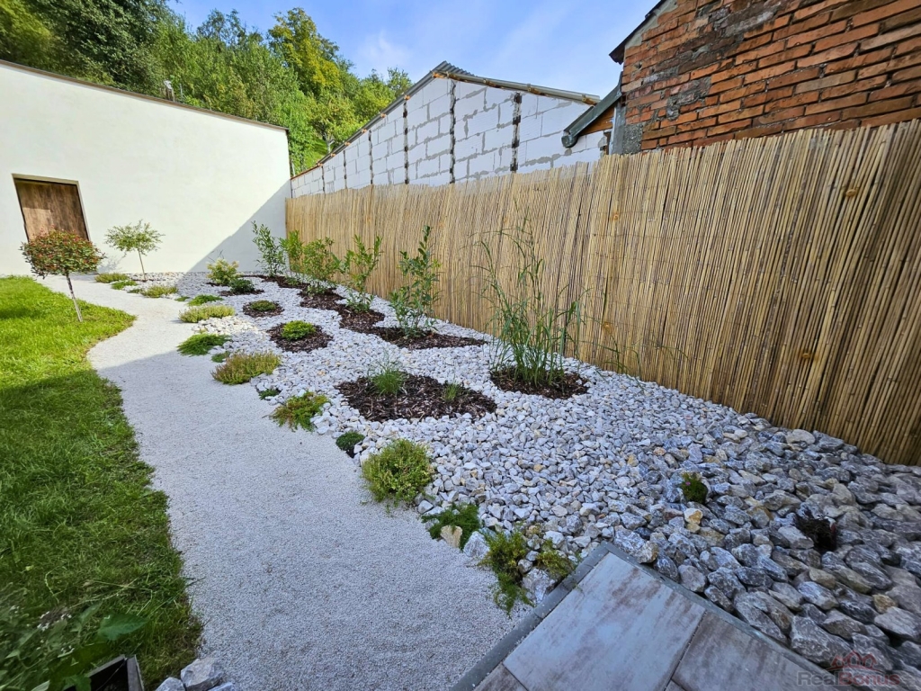 rovná část (160 m) ideální na posezení pod pergolou, hry nebo grilování