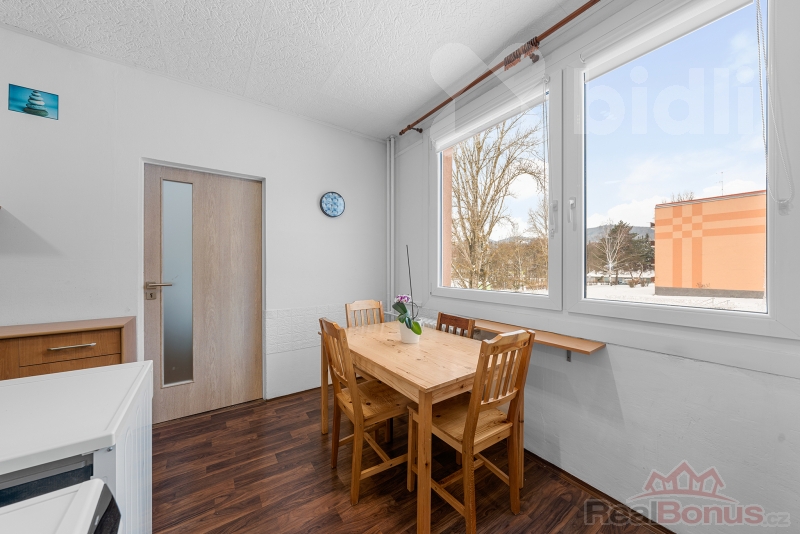Co je na tomto bytě to nejlepší? Že v něm prostě chcete být. Není to žádný přeplácaný luxus, ale poctivý, útulný domov, kde všechno dává smysl. Ráno vstanete, projdete čistým světlým bytem do kuchyně, uvaříte si kávu a jdete si sednout do obýváku. A tam... tam vám z gauče vyrazí dech ten výhled na Krušné hory. Každý den. Zdarma. Děti? Mají své pokoje, kam se můžou zavřít a mít klid. Vy? Také máte klid. Pračka, sušička, myčka, všechno má své místo. Šatna v předsíni je taková maličkost, která ale změní život, konečně je kam dát ty bundy a boty. Škola, kam děti dojdou samy. Zdravotní středisko, kdyby něco. Park, kde si můžou hrát a vy je vidíte z okna. Obchody tak blízko, že auto skoro nepotřebujete. Tohle je život, kde ušetříte čas i nervy a to je dneska luxus. Koupelna? Ano, je zánovní, ale čistá a funkční. Podlahy praktické, snadno se udržují. Tohle je byt pro rodinu, která chce žít normálně, ale hezky. Bez zbytečností, ale se vším podstatným. Vsadím se, že vás to chytne hned u dveří.