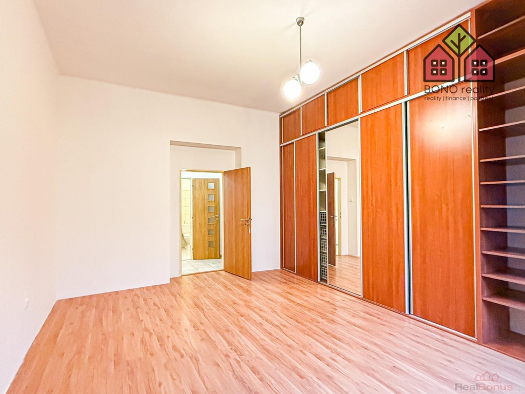 Samotná bytová jednotka je situována v přízemí cihlového řadového domu vystaveného roku 1905, který je v současné době po osazení plastovými okny a revitalizaci inženýrských sítí i jeho vnitřních společných prostor. Jeho stav je tak dobrý. Příjemně prosvětlený byt o podlahové ploše 89 m2 se sestává z obývacího pokoje, kuchyně, ložnice, koupelny a vstupní chodby. Díky velmi dobré dispozici je byt prostorný a jeho místnosti vytvářejí příjemný pocit soukromí. Obývací pokoj, jehož součástí je také vstup na super zastřešený balkón o ploše 8 m2, je velice prostorný (největší místností bytu a vkusně propojený s kuchyní. Ta je vybavená zánovní kuchyňskou linkou s dostačeným množstvím pracovních ploch i úložných prostor a spotřebiči -> elektrická trouba, plynový sporák, digestoř a myčka. Ložnice je rovněž velice prostorná a disponuje i mohutnými vestavěný skříněmi. Dětský pokoj je standardní rozměrů a jistě pojme veškerý potřebný nábytek a vybavení. V koupelně se zděným jádrem, jež je obloženo keramickým obkladem je situována rohová vana, umyvadlo s koupelnovou skříňkou, společná toaleta a místo pro automatickou pračku.