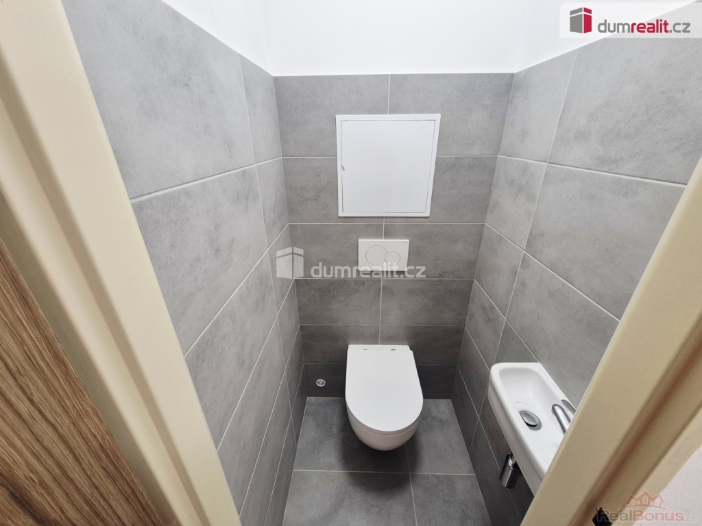 Koupelna má sprchový kout a toaleta je samostatná.