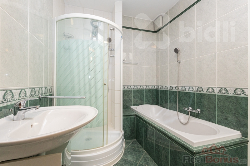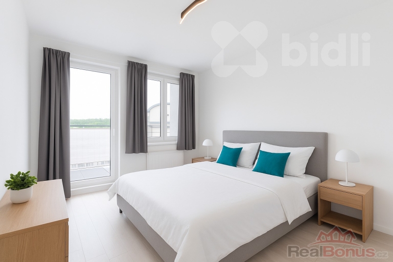 Dispozice 3+kk zahrnuje skutečně komfortní obývací prostor s kuchyňským koutem, velký 38 m2, který je ozvláštněn velkým zabudovaným akváriem. Na kuchyni navazuje velká komora se zázemím pro akvárium a napojením pro pračku a sušičku. Na protější straně bytu je vstupní předsíňka, hala se šatními skříněmi, dvě samostatné ložnice a koupelna s vanou, sprchovým koutem, umyvadlem a samostatným WC. Byt je vybaven klimatizační jednotkou, kterou lze i ekologicky vytápět. K dispozici je ihned, je čerstvě vymalovaný a bez vybavení (pro lepší představu jsou v inzerci využity vizualizace). Byt je nadstandardně odhlučněný a zabezpečený.