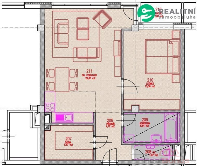 66 m, dispozice 2+kk s výborným uspořádáním