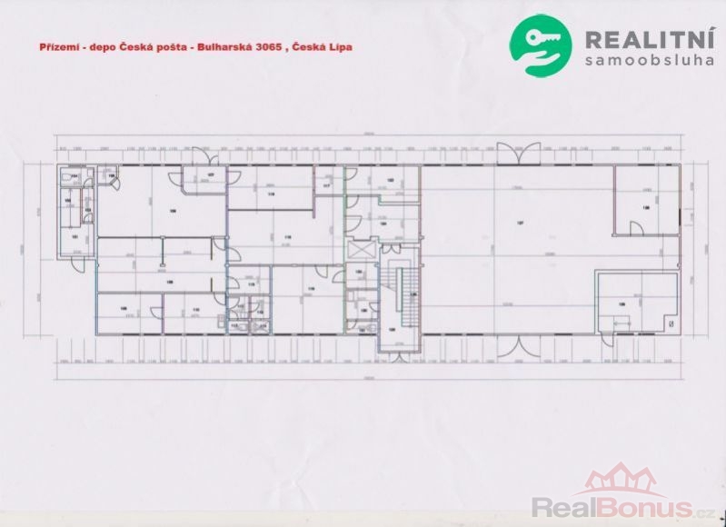 Česká Lípa , nabízím k prodeji zděnou budovu k rekonstrukci (dříve areál depa České pošty ) v atraktivní lokalitě blízkosti autobusového a vlakového nádraží v České Lípě ul. Bulharská . Vynikající dopravní obslužnost , vhodné pro depo zásilkových služeb , skladování , zřízení výrobních , dílenských či obchodních prostor , atd . Svislé nosné konstrukce jsou z ocele, příčky zděné, okna dřevěná zdvojená , sociální zařízení, výška stropu 3,30m o celkové užitné ploše 948 m2 .