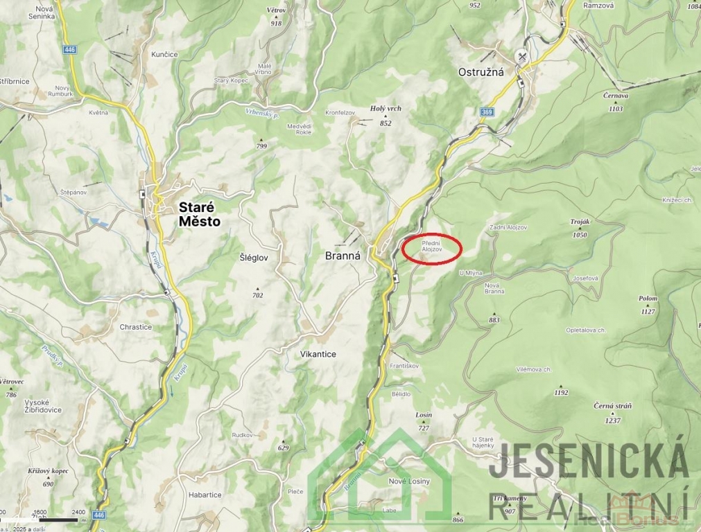 Kancelář na trhu s nemovitostmi, Jesenická realitní, nabízí slunný pozemek v obci Branná, část Přední Alojzov ( okres Šumperk ). Pozemek leží přímo v srdci Jeseníků, na pěkném místě, okraj obce s příjezdem z hlavní asfaltové komunikace. Pro nadšence venkovského, horského života nabídne ticho a klid.