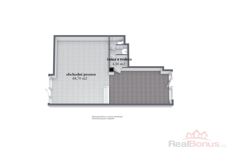 hlavní obchodní prostor: 68,7 m
