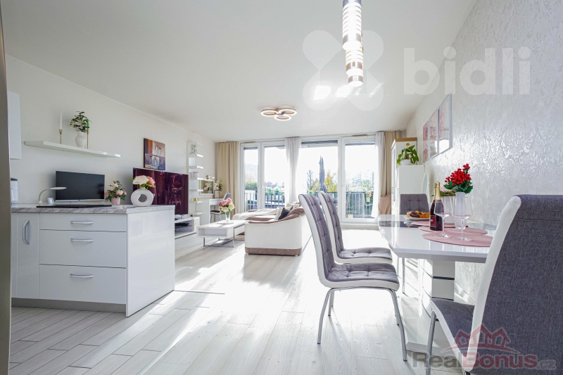 Bytová jednotka o dispozici 3+kk nabízí praktické a velmi dobře řešené uspořádání: