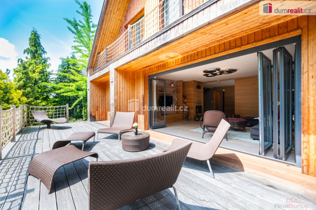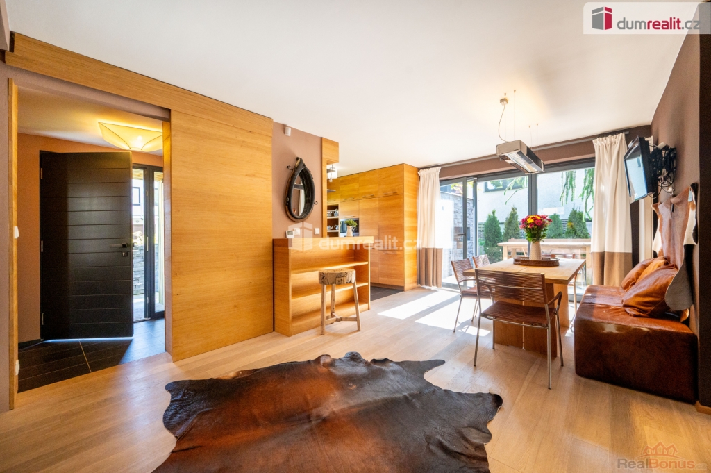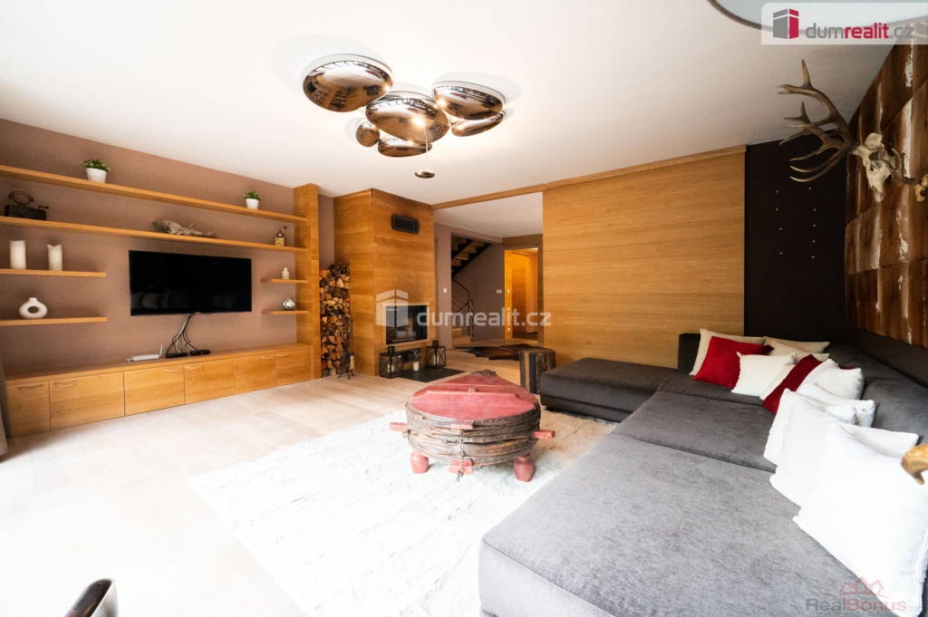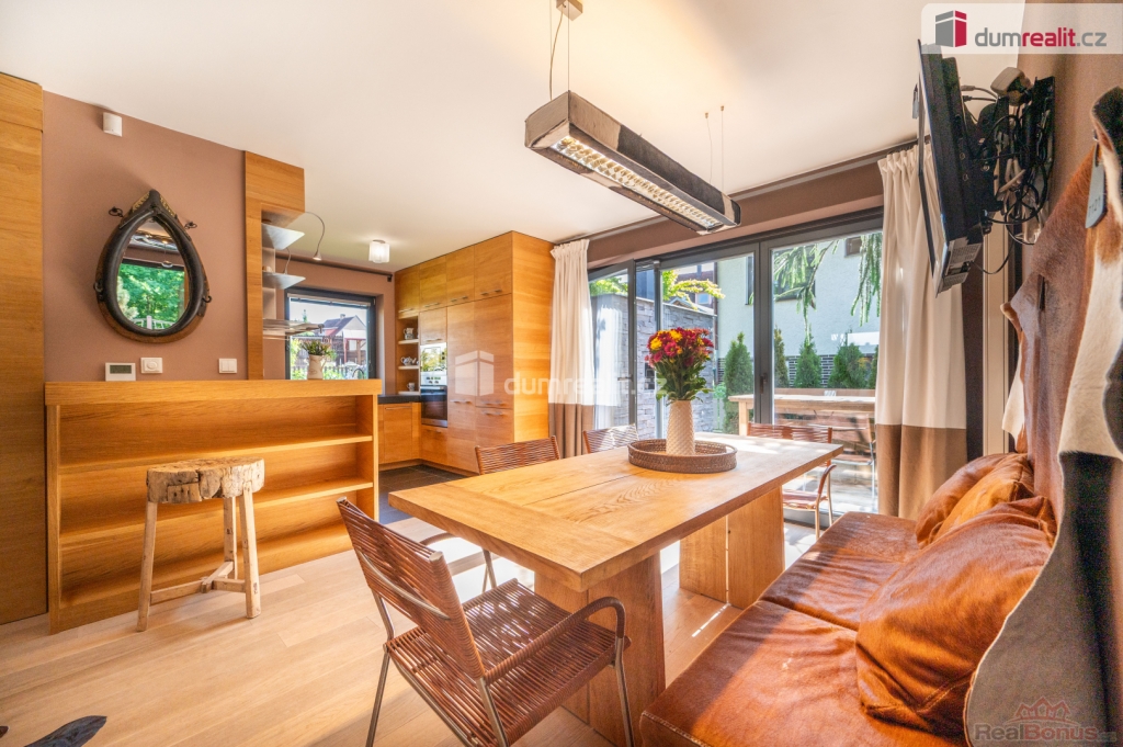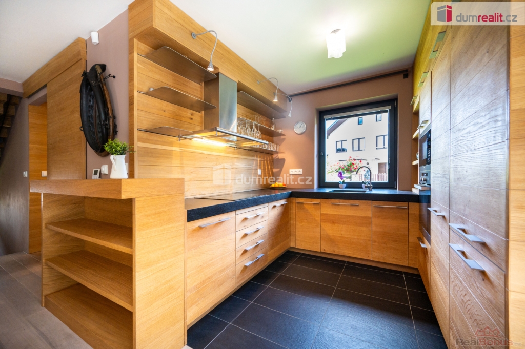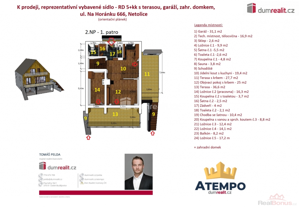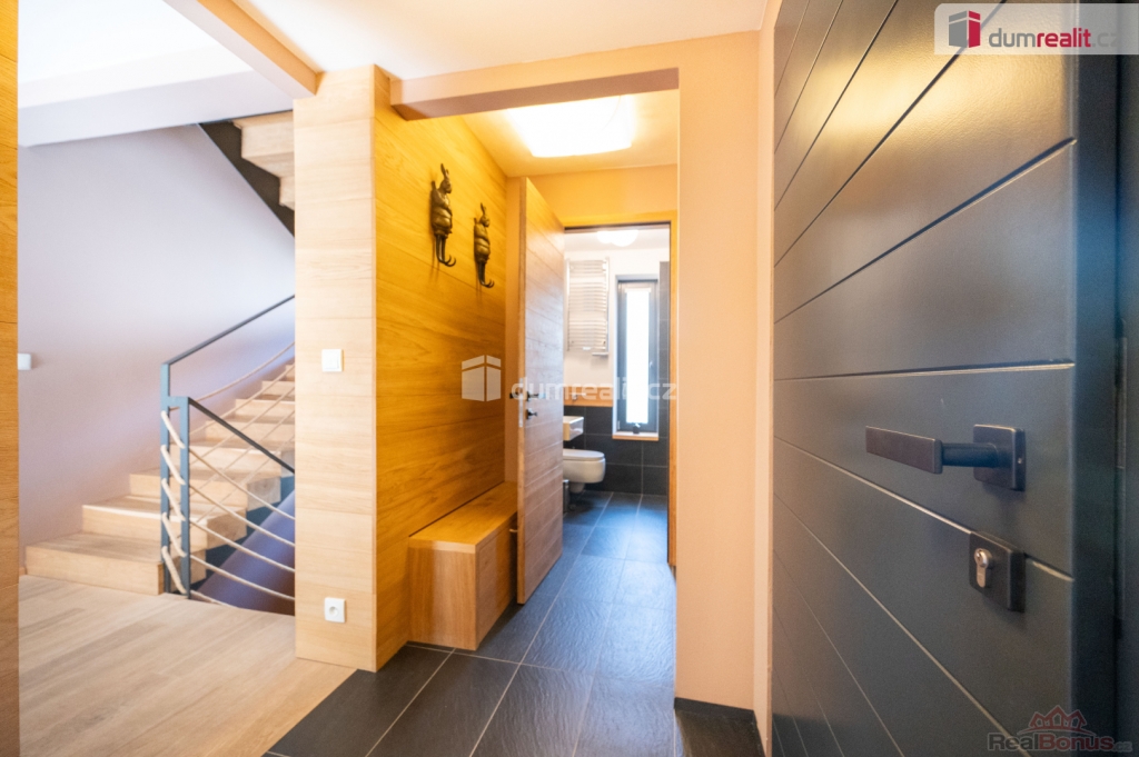 Dům se prodává s vybavením. Více informací Vám poskytne realitní makléř Tomáš Pelda., Dumrealit.cz Vám zprostředkuje koupi kompletně zrekonstruovaného reprezentativního sídla - designového, prakticky řešeného třípodlažního zatepleného rodinného domu 5+kk se třemi koupelnami, terasou, balkónem, dvěma garážemi, tělocvičnou, zahradním domkem a kaskádovitým oploceným pozemkem ve městě Netolice, Na Horánku 666.