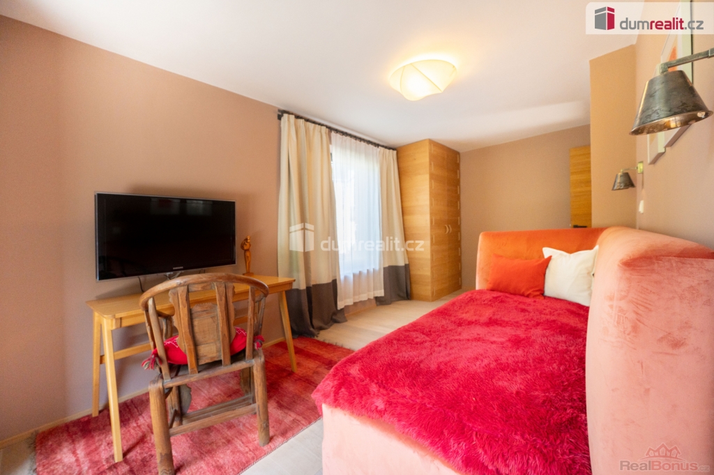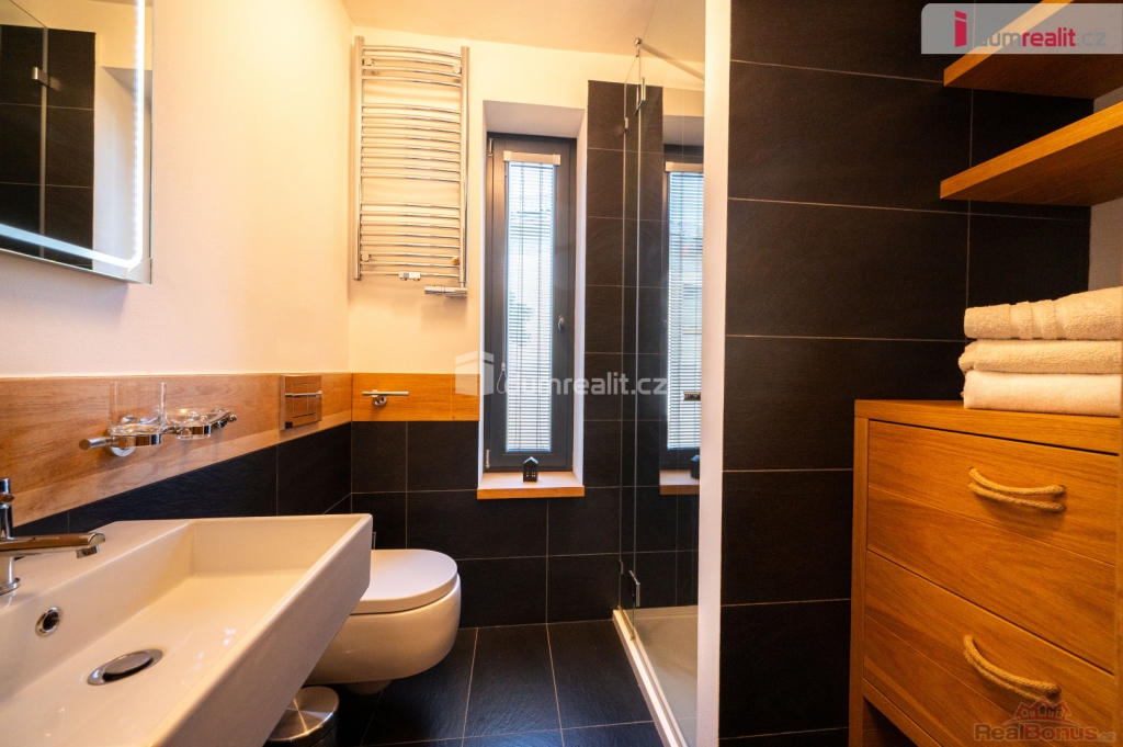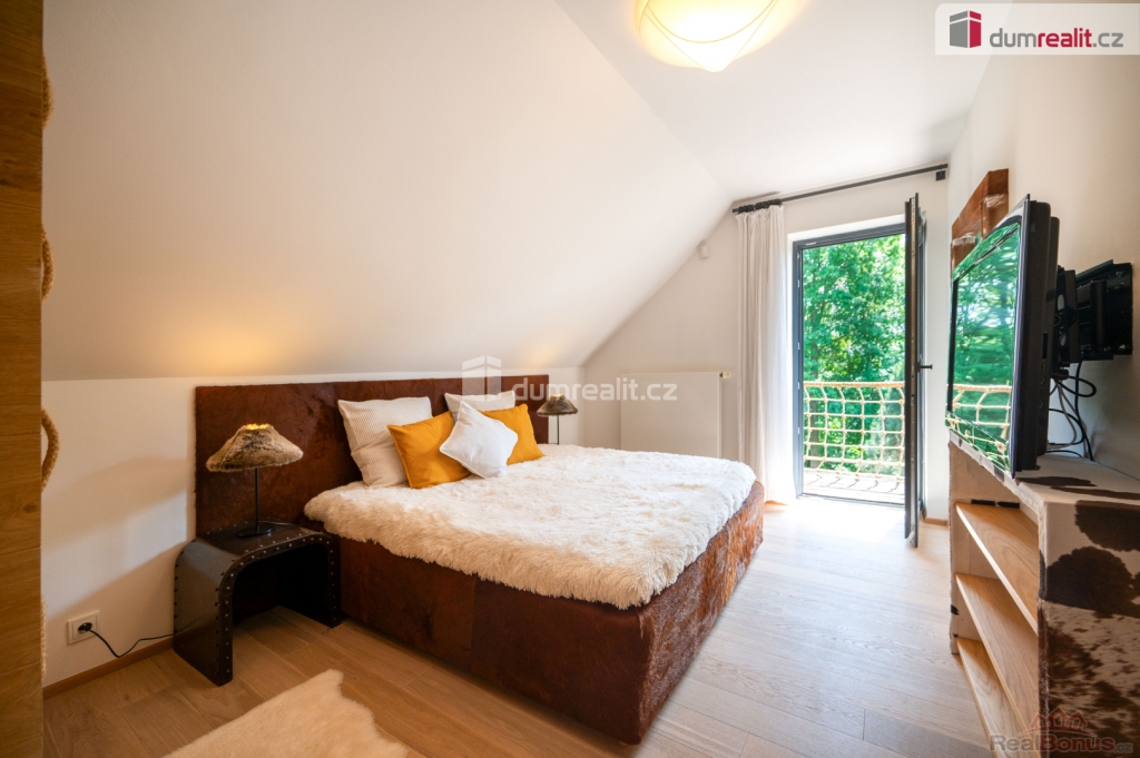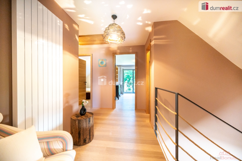V obytném podkroví se nachází tři ložnice se vstupem na balkón, koupelna s vanou, sprchovým koutem a samostatná toaleta.