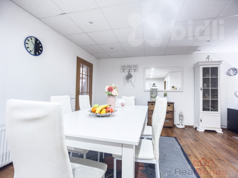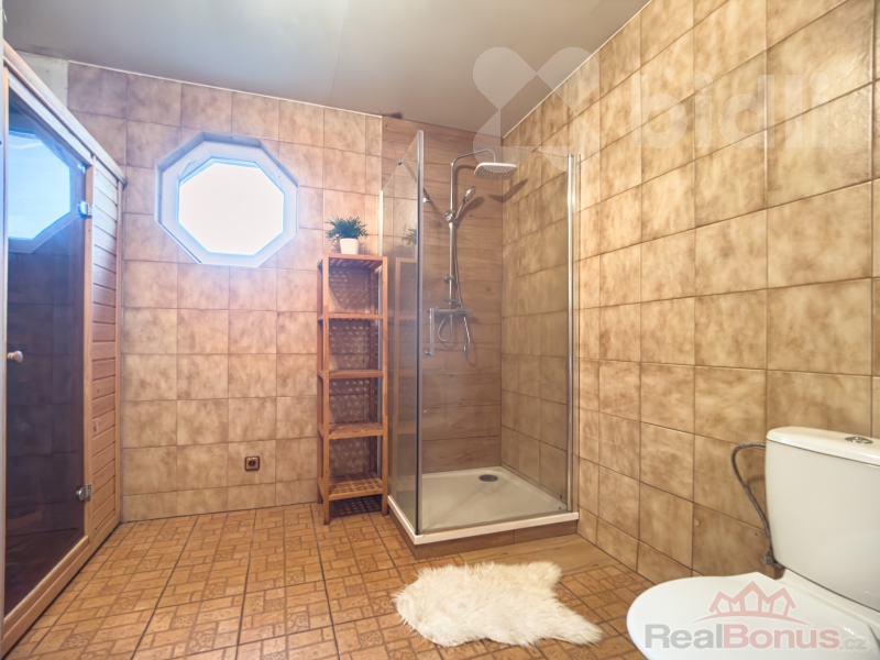 Dům je patrový a nabízí prakticky řešenou dispozici. V přízemí se nachází vchodová hala, kuchyně s jídelním stolem, prostorný obývací pokoj a koupelna s rohovou vanou a toaletou. První patro disponuje třemi samostatnými pokoji a druhou koupelnou, ve které najdete nový sprchový kout a infra saunu.