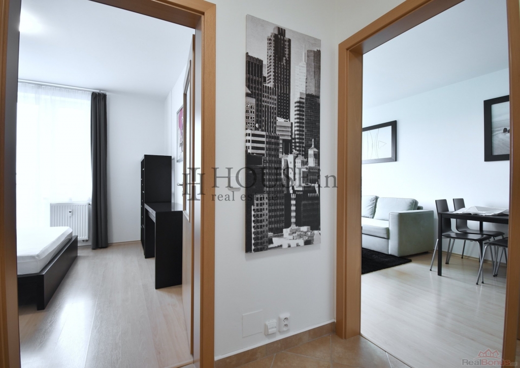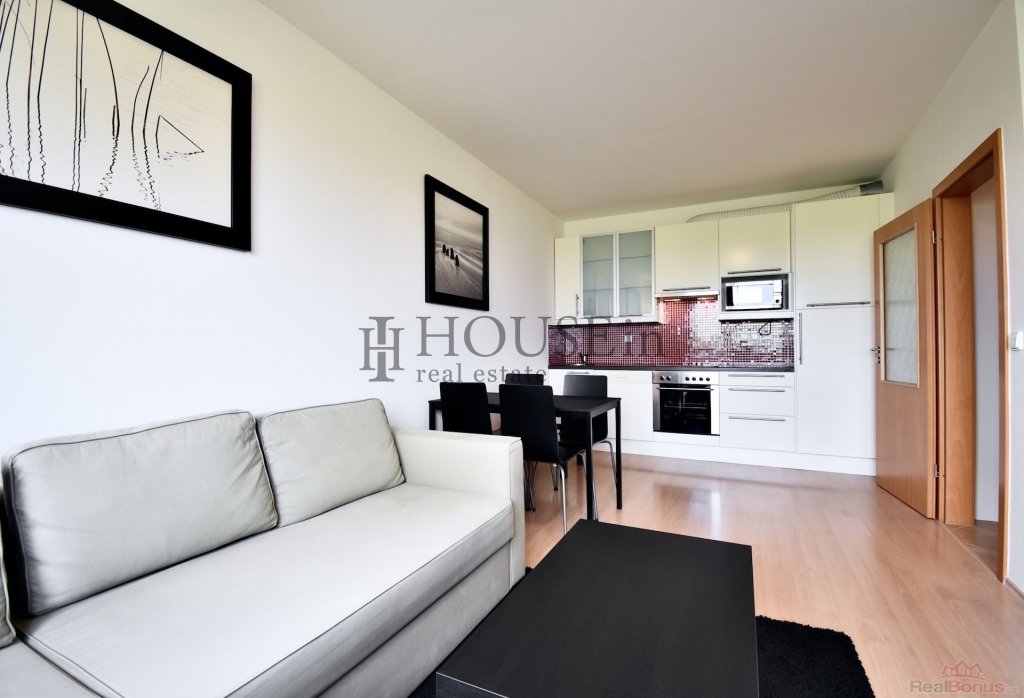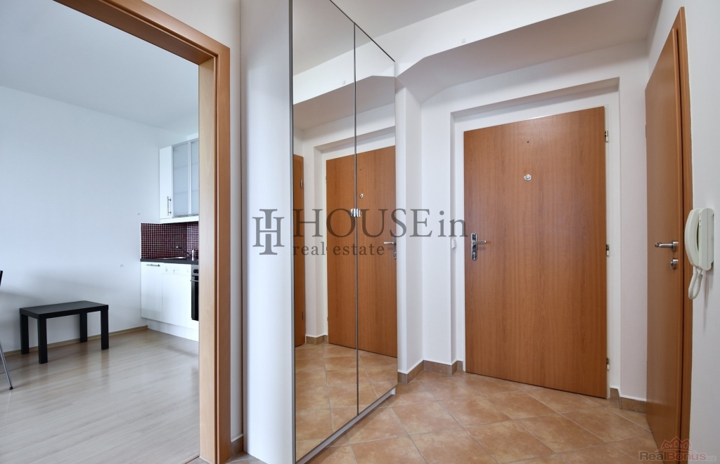 Nabízíme Vám k pronájumu kompletně vybavený, světlý byt 2+kk o celkové ploše 42,1 m2 s balkonem (3,1 m2) a garážovým stáním v ceně nájmu. Byt se nachází v moderní novostavbě z roku 2010, v 6. nadzemním podlaží domu v ulici Ginzova, Praha 10 ? Záběhlice. Z bytu je příjemný výhled do zeleně a zastávka MHD ?V Korytech? je vzdálena pouhé dvě minuty chůze.