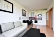 Byt disponuje předsíní s dvoudílnou botníkovou a šatní skříní. Součástí bytu je kuchyňský kout s plně vybavenou kuchyňskou linkou ? lednice s mrazákem, myčka na nádobí, mikrovlnná trouba, elektrická trouba, sklokeramická varná deska, digestoř, jídelní stůl a čtyři židle. Kuchyň je propojena s obývací částí, kde se nachází sedačka, konferenční stolek, TV komoda a dvě policové skříně.