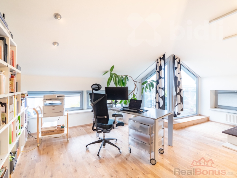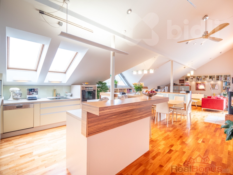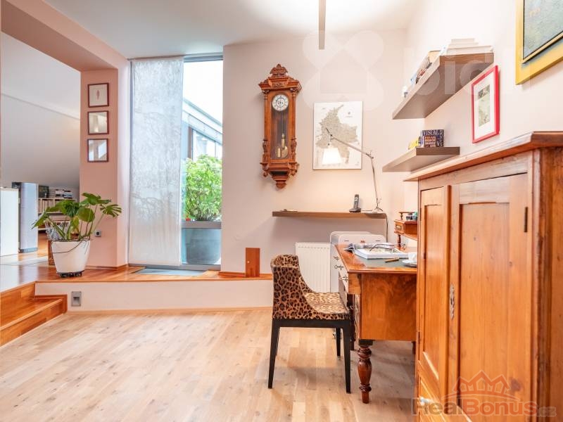 Byt se nachází ve 3. patře a nabízí prostorné uspořádání, které splňuje vysoké nároky na příjemné bydlení. Architektonický návrh od renomovaných tvůrců Patrika Kotase a Hynka Maňáka proměnil původní půdu, rozprostírající se přes čtyři bytové jednotky, v jedinečný a vzdušný prostor.