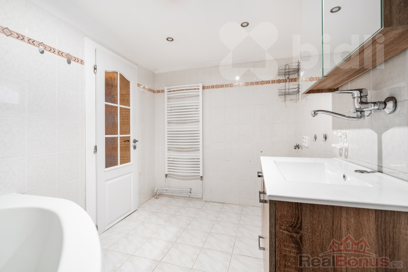 Nabízíme k pronájmu rodinný dům se zahradou, který se nachází v klidné části města Košťany - Střelná. Dům má dvě obytná podlaží a je částečně podsklepený. Dispozice domu je řešena jako 3+KK. Přízemí tvoří prostorná předsíň, chodba, koupelna, toaleta, propojený prostor kuchyně, jídelního koutu a obývacího pokoje. V patře jsou dva pokoje. K domu náleží menší zahrada s prostornou zpevněnou plochou a také zahradní přístřešek s krbem. V případě zájmu je po dohodě s majiteli možné využívat bazén. K vytápění domu slouží elektrokotel a krbová kamna s výměníkem, která mohou výrazně snížit náklady na vytápění. Měsíční nájemné činí 25.000,- Kč, energie (elektřinu) bude mít nájemce psané na sebe. Při podpisu nájemní smlouvy je potřeba složit vratnou kauci ve výši dvou měsíčních nájmů (50.000,- Kč) a provizi RK ve výši jednoho nájemného (25.000,- Kč).