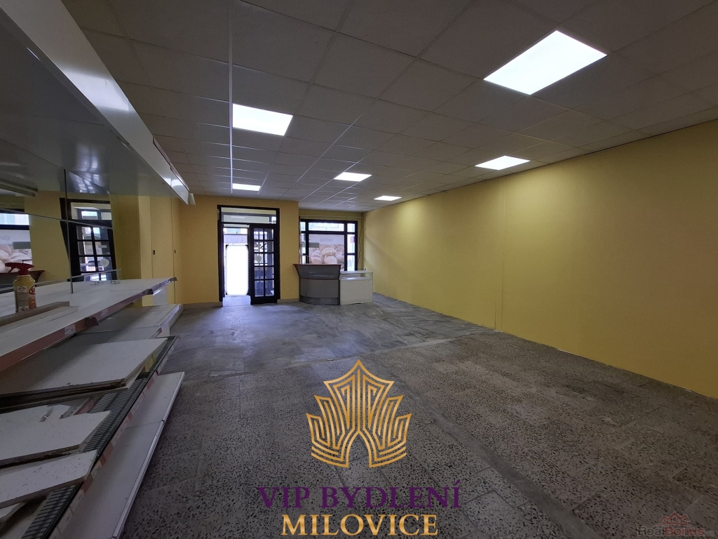 Nabízíme Vám k pronájmu obchodní prostor o výměře 63 m2 v Milovicích, ulice Mírová. Obchodní prostor s výlohou má samostatný vstup z ulice. Momentálně se jedná o místnost o rozměru š. 5,5 m x d. 11,5 m. Místnost je možno po dohodě rozdělit dle přání nájemce na více částí. V prodejně je k dispozici jedna toaleta a umyvadlo s teplou vodou. Prostor možno využít jako provozovnu, sklad, prodejnu nebo kancelář. V blízkosti se nachází další obchody, nádraží a autobusová zastávka. Nájem je 15.000,- Kč + 5.000,- Kč zálohy za energie, 20.000,- Kč vratná kauce + poplatek RK. Volné ihned.