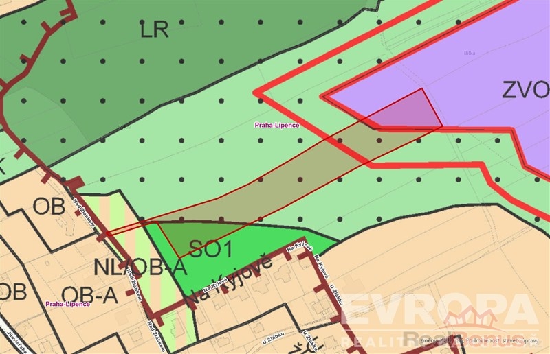 Budoucí produkční zóna: Podle nového Metropolitního plánu (lokalita 633 / Lipence rozvoj) je menší část pozemku (cca 3 000 m) definována jako zastavitelná stavební plocha se způsobem využití produkční.
