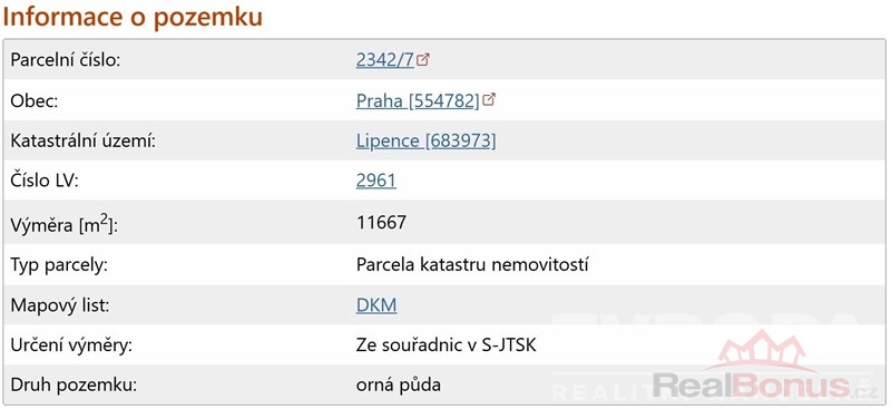 | Vlastní pozemek | 11 667 m² |