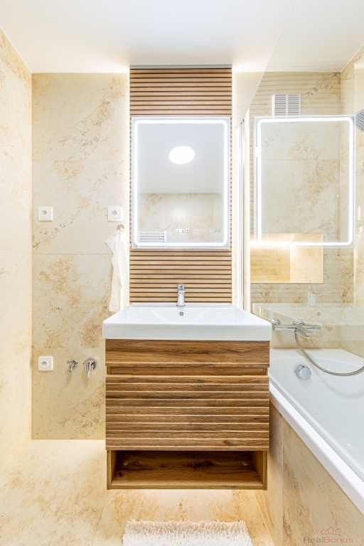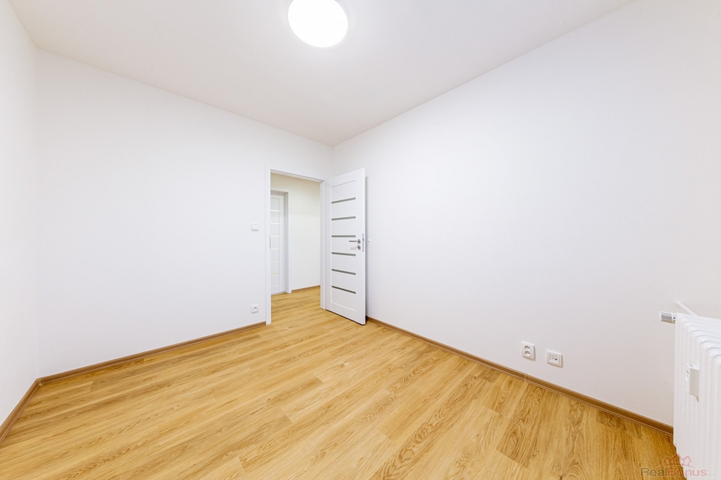 V bytě jsou nová plastová okna s izolačními trojskly (v obývacím pokoji a ložnici), nová elektroinstalace včetně revize, nové zásuvky a vypínače, nové rozvody vody a odpadů, koupelna s vanou včetně skleněné zástěny, koupelnová skříňka s umyvadlem včetně baterie, LED zrcadlo, LED osvětlení panelu včetně niky v koupelně, elektrický koupelnový radiátor, vestavěné WC, umývátko se skříňkou, bidetová sprška, LED zrcadlo, LED osvětlení panelu, ventilátor, nové horizontální žaluzie, vinylové podlahy, LED osvětlení celého bytu, akustické panely na chodbě a obývacím pokoji, nové interiérové dveře a zárubně, protipožární dveře.
