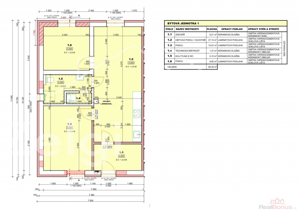 | Celková podlahová plocha | 65 m² |
