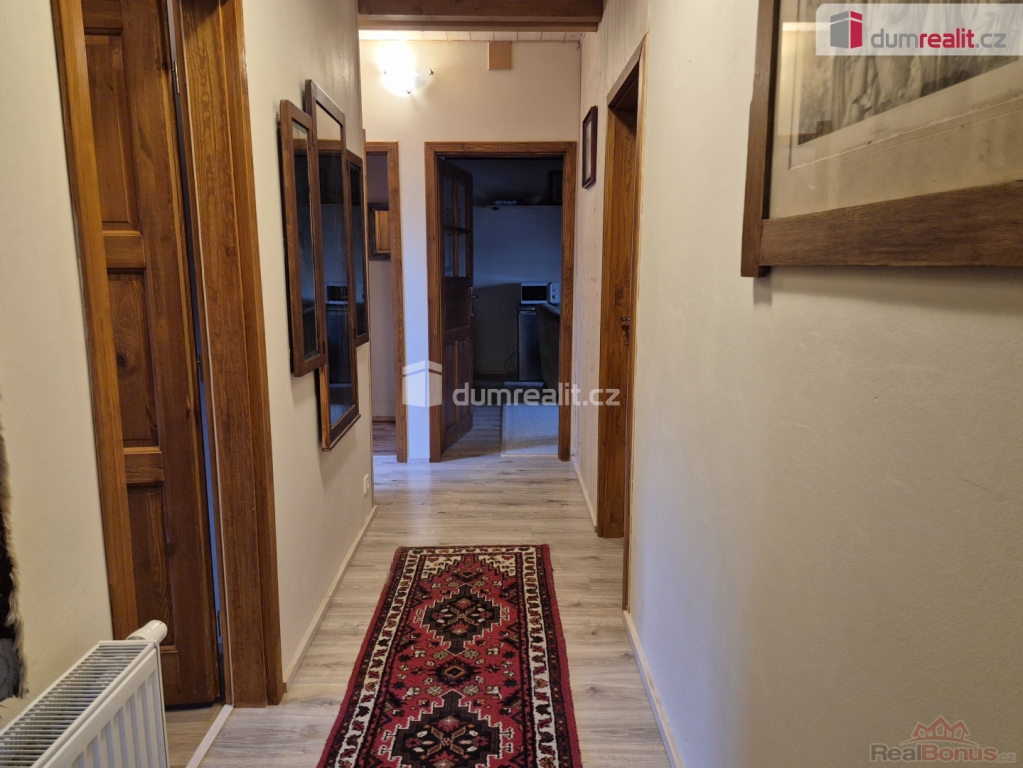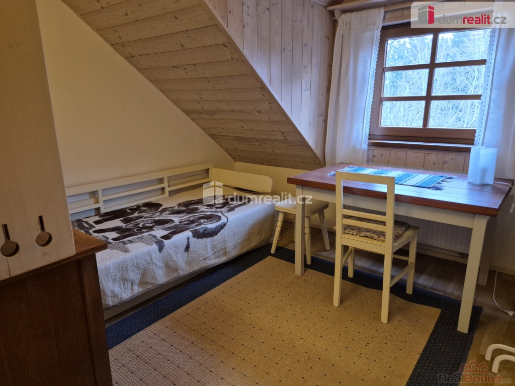 Jedná se o velmi pěkný a kompletně vybavený byt, přístupný po vnějším dřevěném schodišti, který tvoří chodba, dvě ložnice, jednolůžková a dvoulůžková (manželská), obývák s kuchyňským koutem a koupelna se sprchovým koutem, umyvadlem a WC.