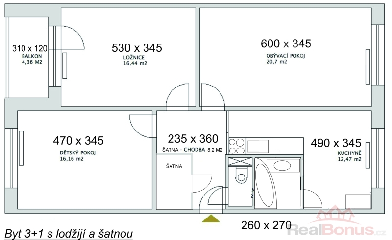 | Dispozice bytu | 3+1 |