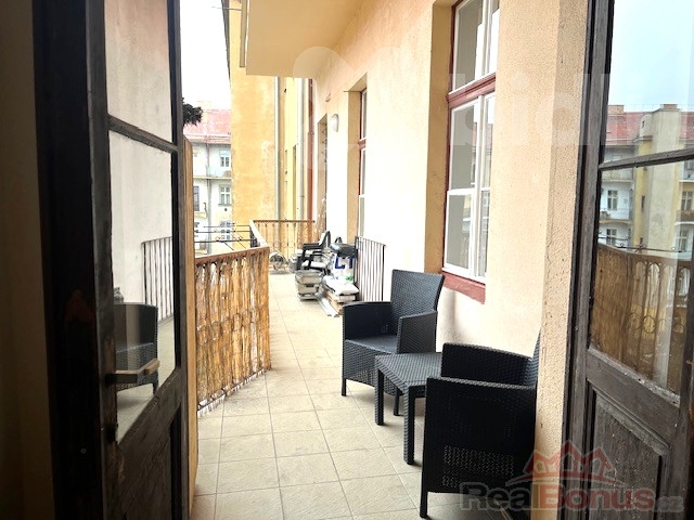 Přímo u bytu je pavlač pouze pro 2 byty, orientovaná do vnitrobloku, která skýtá možnost posezení.