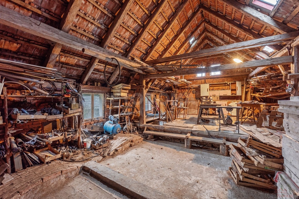 Vedlejší stavba: Využívána jako garáž a dílna, ideální pro kutily.