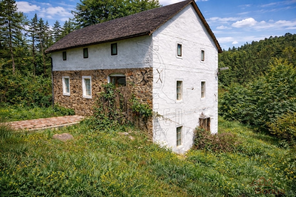 Nabízíme k prodeji historický mlýn Bahýnko - chalupa s atmosférou, ideální pro rekreaci či penzion na pozemku 1054 m2, Černíny - Bahno (okres Kutná Hora). Prodej stylové chalupy historický mlýn u Kutné Hory, 240 m, příroda, klid.