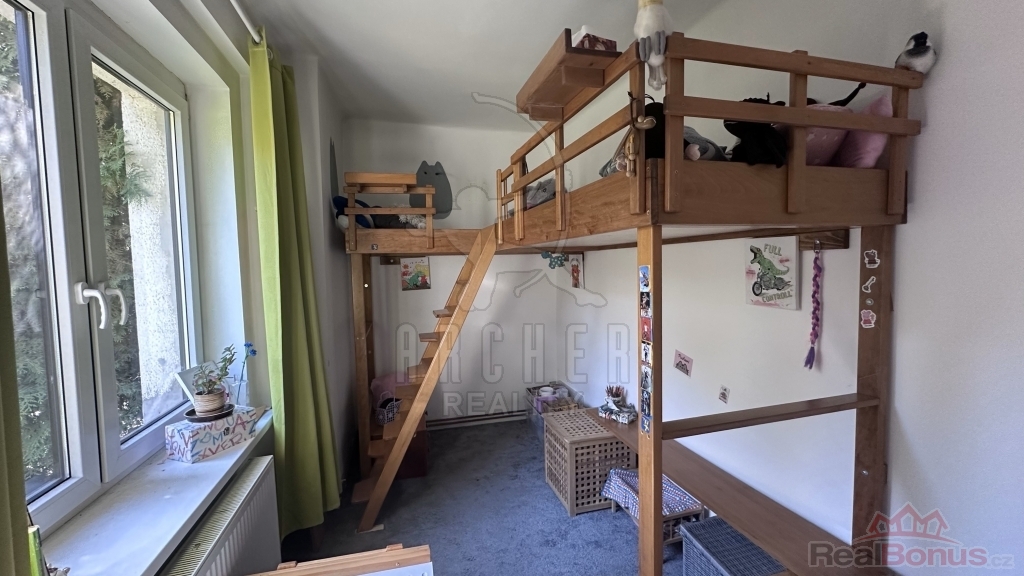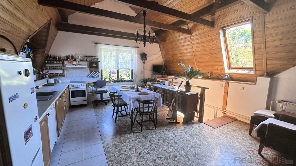 Dispozice jednotky 3+1 v 1.NP: Ze zádveří vstupujete do koupelny se sprchovým koutem, samostatného WC a součástí je i technický kout s plynovým kotlem i kotlem na tuhá paliva. Dále se dostáváme do vybavené kuchyně s jídelním stolem a dále do menšího obývacího pokoje. Odsud je vstup do dalších dvou neprůchozích pokojů, jeden dětský a jedna ložnice.
