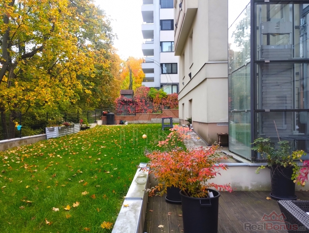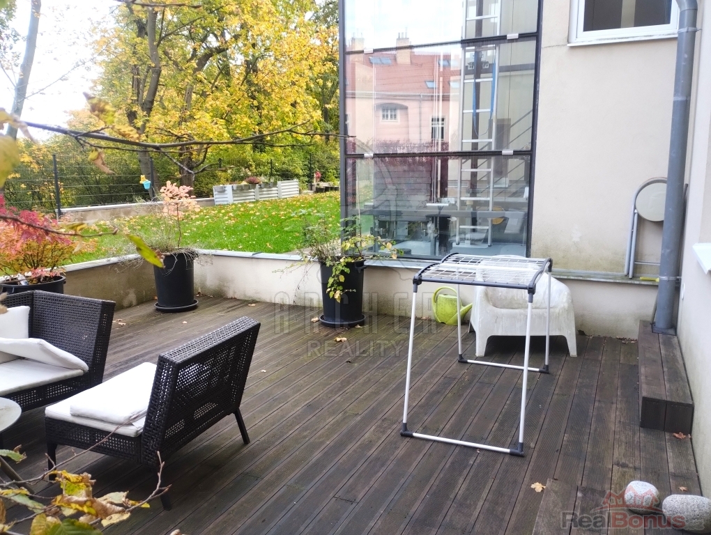 Nabízíme k prodeji byt 1+kk/T/S v OV, 68 m2, 32 m2 terasa, 2 m2 sklep, Praha 6 - Břevnov, ul. Nad Závěrkou. Moderní byt s výtahem a velkou terasou se nachází nad Dlabačovem, kousek od Pražského Hradu. Nabízí obývací pokoj s plně vybavenou kuchyňskou linkou, který navazuje na téměř stejně velkou terasu. Je vybaven nábytkem, vestavěnými skříněmi, postelí a policemi. Květiny a stůl nejsou k dispozici. Okna jsou nová plastová včetně francouzského a nechybí venkovní bezpečnostní rolety. Koupelna se sprchovým koutem, umyvadlem a toaletou má velké okno. Byt je vytápěn vlastním elektrickým kotlem. Vstupní dveře do předsíně jsou bezpečnostní a hned za nimi je k dispozici sklípek pod schodištěm.