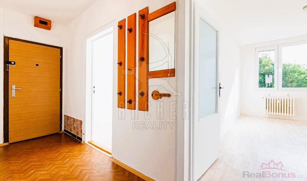 Praktická dispozice umožňuje pohodlné bydlení rodiny i více osob: dva samostatné pokoje, velký obývací prostor s kuchyňským koutem a jídelnou, komora, koupelna se sprchovým koutem a samostatná toaleta. Z obývacího pokoje je vstup na balkon (3,5 m2); další menší balkon lze využívat po dohodě s družstvem. K bytu patří sklepní kóje.