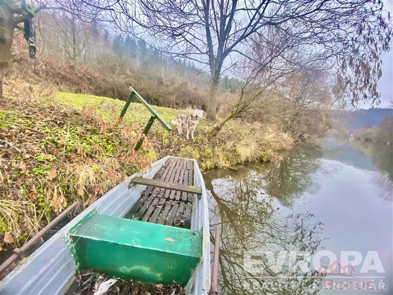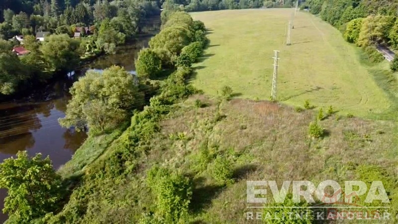 Slunné pozemky u řeky, které nejsou v záplavové zóně, s orientací na jih, v klidné oblasti s výhledem na Sázavu a okolní kopce.