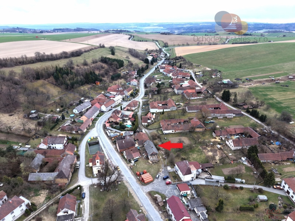 Pozemek má 241 m a leží přímo na návsi, v samotném srdci obce, jen pár kroků od malého kostelíka, který dotváří klidnou atmosféru místa.