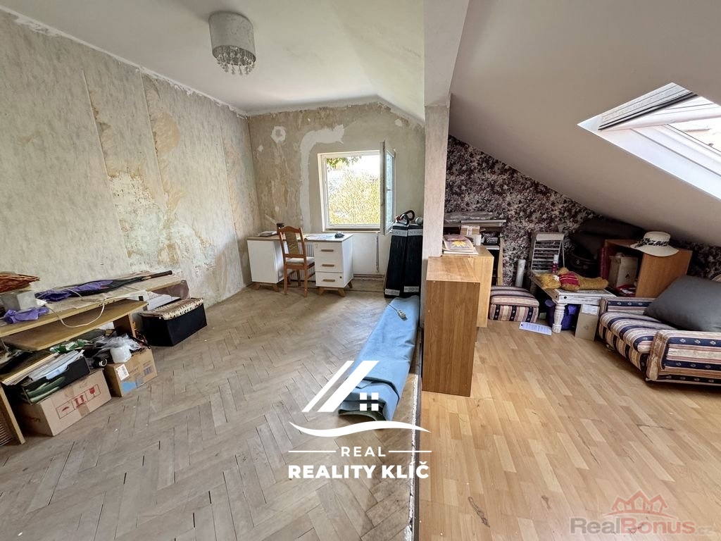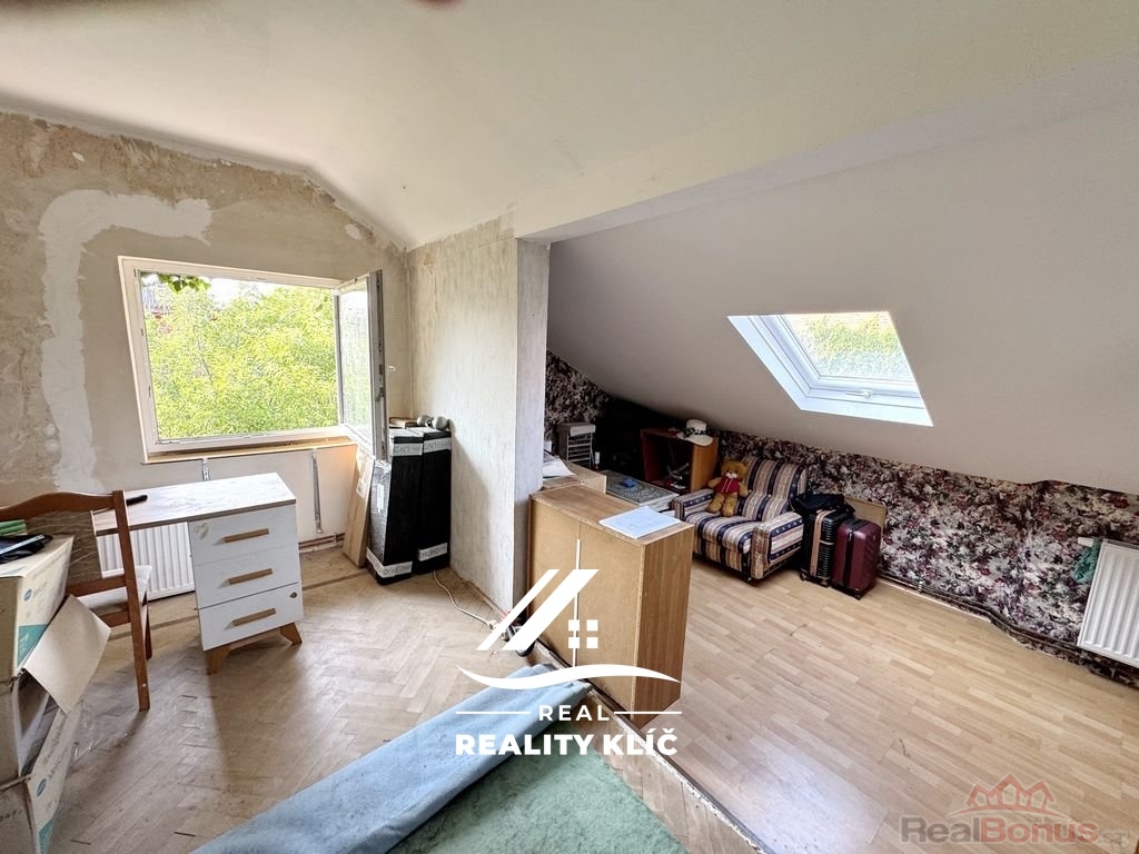 Podkrovní pokoje: světlé prostory se střešními okny, možnost využití jako ložnice, dětské pokoje či pracovna.