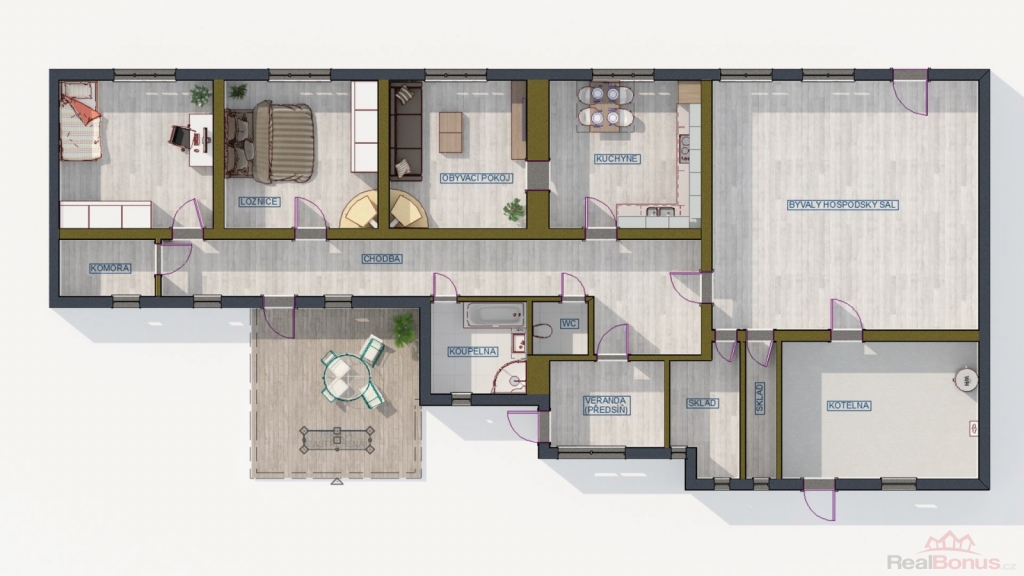 3D vizualizace, fotografie a video vám pomohou lépe si představit tuto jedinečnou nemovitost. Nechte se překvapit jejím prostorem a potenciálem!