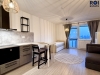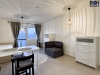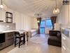 V interiéru na vás čeká plnohodnotné vybavení, takže si stačí přinést jen osobní věci. Obývací část disponuje pracovní plochou, šatními systémy a především praktickou rozkládací postelí, která přes den šetří místo a v noci zajistí komfortní spaní. Moderní kuchyně v elegantních šedých tónech s barovým pultem je osazena kvalitními spotřebiči a velkou nerezovou lednicí. Maximální komfort v každém ročním období pak zajišťuje instalovaná klimatizace.