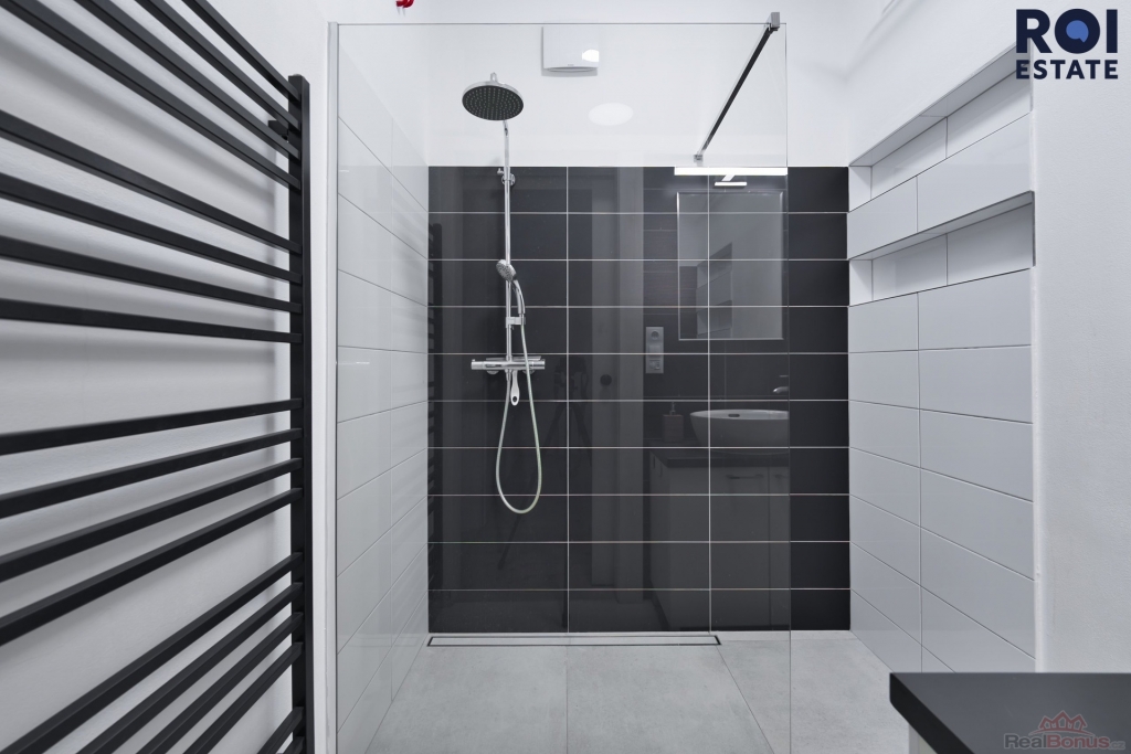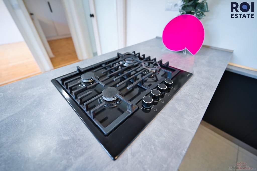 Byt je zařízen moderní kuchyňskou linkou s vestavěnými spotřebiči, včetně lednice, myčky, sporáku a trouby. V koupelně najdete prostorný sprchový kout, samostatnou toaletu a pračku. Velkým bonusem jsou vestavěné skříně, které poskytují dostatek úložného prostoru.